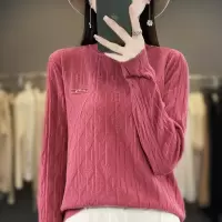 免费试穿 半高领羊绒衫女宽松拼接印花潮流加厚毛衣羊毛衫针织打底衣针织上衣服打底衫春秋内搭大码显瘦洋气打底衫女