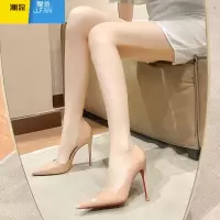 聚范裸色高跟鞋女细跟2024年新款红底鞋尖头浅口气质漆皮职业侧空单鞋