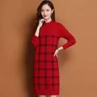 春秋新款羊绒连衣裙针织打底衫纯羊毛衫女圆领配大衣春秋装纯羊毛衣针织打底羊绒衫女春秋季中长款宽松针织打底毛衣加厚羊毛连衣裙