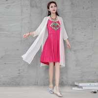 薇侣2017新品民族风复古宽松中长开衫长外套女空调衫雪纺薄大外披