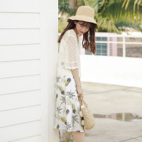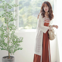 2017新款瞌睡兔精致钩花镂空中长款针织开衫女2017秋装新款九分袖防晒衫