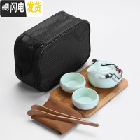 三维工匠定窑旅行功夫茶具套装一壶二杯快客杯茶壶户外便携整家用定制ogo 粉青一壶两杯+手提袋