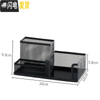 三维工匠金属笔筒创意时尚办公室摆件笔桶可爱多功能收纳盒学生用桌面笔架 三格笔筒黑色