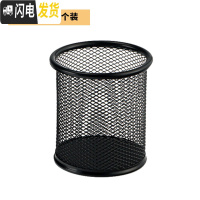 三维工匠金属笔筒创意时尚办公室摆件笔桶可爱多功能收纳盒学生用桌面笔架 圆笔筒黑色一个装