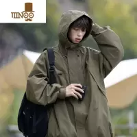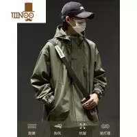 YANXU冲锋衣外套男美式潮牌军绿色户外登山服宽松连帽机能工装夹克