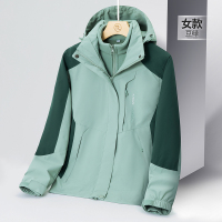 渔人船长大码情侣款冲锋衣男女三合一防风保暖可拆卸拼色两件套登山服外套