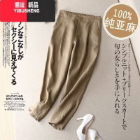 YIBUSHENG亚麻小脚裤季新款休闲裤女宽松显瘦麻料直筒垂感九分棉麻哈伦裤