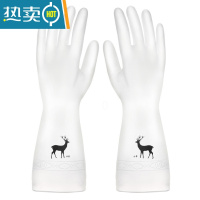敬平洗碗手套女防水家用厨房洗衣洗菜专用套超薄清洁耐用家务塑胶手套 2双装小鹿 S