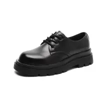 德比鞋男低帮马丁靴英伦风圆头真皮大头鞋黑色装鞋厚底休闲皮鞋