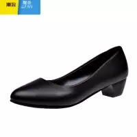 聚范上班工作鞋女黑色新款高跟鞋职业面试皮鞋粗跟工装鞋礼仪鞋不累脚
