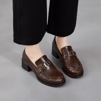 真皮褶皱小皮鞋女2026春季新款女鞋基础百搭舒适羊皮粗跟乐福鞋子