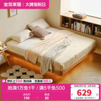 全友家居 无床头悬浮全实木床小户型单人床原木风
