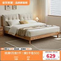 全友家居新中式舒适软包床屏橡胶木实木脚板木床卧室家具双人床