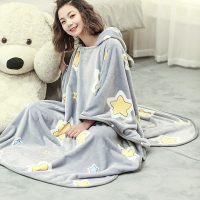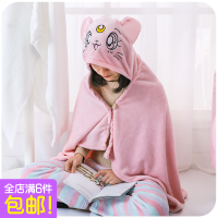 可爱少女秋冬连帽披肩斗篷毛毯加厚保暖午睡盖毯办公室休闲小毯子