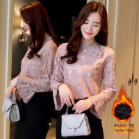 2017秋冬新名媛性感喇叭袖蕾丝连衣裙中长款包臀修身打底裙