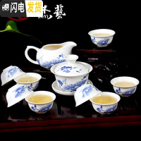 三维工匠茶具泡茶器 陶瓷功夫茶具套装 简易整套青花盖碗家用白瓷茶杯茶壶 10头功夫茶具[荷塘春色] 10件