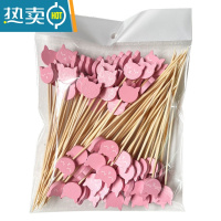 敬平水果签竹签三明治水果叉子可爱创意艺术牙签甜品汉堡插网红 粉 粉色猫头鹰100个