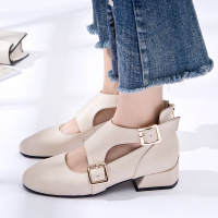 浅口单鞋女2017新款秋季韩版百搭女鞋粗跟罗马鞋子学生小皮鞋