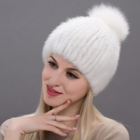 17冬季新款水貂毛皮草包头帽女士保暖宽条手缝狐狸毛球护耳帽