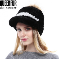 新款水貂编织骑士帽欧美秋冬时尚貉子毛球帽子黑白色均码适合52-60cm