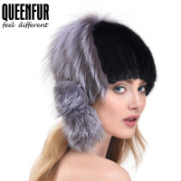 年欧美时尚水貂毛皮草帽秋冬女士新款保暖狐狸毛护耳帽黑色均码(55-60cm)