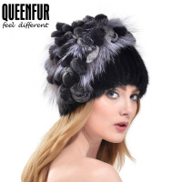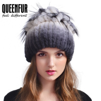 年冬季女士獭兔毛皮草帽子欧美时尚兔毛毛球帽子Color1均码适合55-60cm