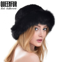 年秋冬新款水貂毛帽子欧美时尚保暖獭兔毛狐狸毛女士皮草帽黑色均码超弹性(52-60cm)