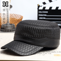 真皮羊皮帽子男青年中年休闲时尚秋冬季皮帽子军帽平顶帽百搭帽 黑色 可调节头围56-60cm