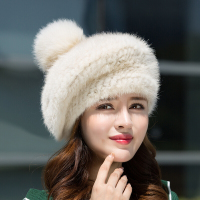 新款水貂帽子女士冬季可爱猫耳朵貂皮帽子冬天保暖皮草帽子女韩版