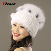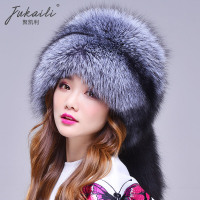 新款水貂帽子整张裘皮貂帽圣诞帽包头帽球可爱女皮草帽子保暖