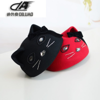 日系贝雷帽秋冬羊毛呢小礼帽可爱猫咪耳朵萌帽子女冬季亲子造型帽