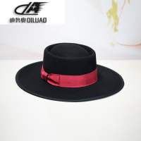 大檐秋冬纯羊毛呢礼帽女英伦百搭爵士帽包边欧美时尚黑色平顶帽子