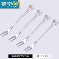 敬平不锈钢水果叉子套装家用水果签蛋糕小叉子创意轻奢高颜值可爱ins 银色樱花叉(4支装)