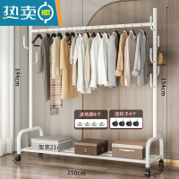 敬平多功能晾衣架落地家用卧室简易折叠晒衣服室内置物挂衣架凉衣杆子 推荐?150cm-单杆双层-加固7挂钩-白色 大
