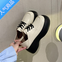 SUNTEK日系小皮鞋女2023新款复古小个子松糕厚底系带乐福鞋白色设计感