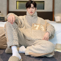 浪莎睡衣男冬季法兰绒加厚保暖长袖家居服肤休闲男士睡衣两件套
