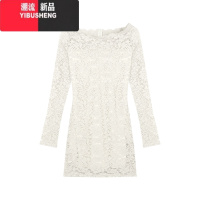YIBUSHENG蕾丝纯欲连衣裙女季长袖御姐风裙子性感一字肩收腰紧身包臀短裙
