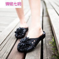 2018夏新款真皮凉拖女低跟坡跟平底中老年民族风软底舒适妈妈拖鞋