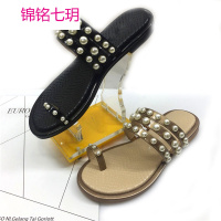 品牌断码特价真皮女鞋2017夏季新款珍珠低跟拖鞋套趾