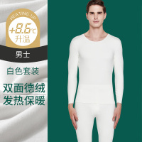 花花公子白色德绒无痕发热保暖内衣单件上衣秋衣男加绒打底衫女冬