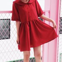 2017新款瞌睡兔彼得潘海军领五分袖仿棉麻甜美少女连衣裙女夏2017新款