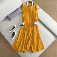 新款穿出高挑身材彼得潘领拼接修身长款连衣裙