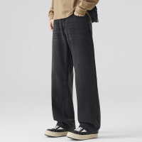 垂坠感阔腿牛仔裤男黑灰渐变做旧宽松直筒美式复古风牛仔长裤