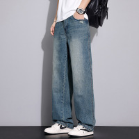 美式阔腿春夏季常规宽松直筒牛仔裤男士百搭潮牌垂感长男裤子