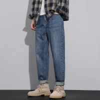 春季经典蓝水洗牛仔裤男宽松直筒赤耳丹宁美式复古卷边休闲长裤