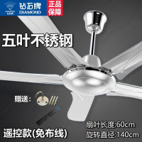 钻石牌吊扇工业家用客厅铁叶宿舍吊式电风扇餐厅轻音大风力不锈钢 遥控款(免布线)-三叶不锈钢(100W)