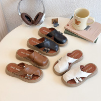 复古包头半拖鞋女夏外穿2026新款超轻便厚底凉拖鞋百搭沙滩罗马鞋