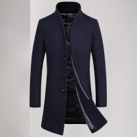莞馨(wanxin)新款秋冬男士羊毛呢大衣 中长款风衣 加厚毛呢外套 立领棉衣服