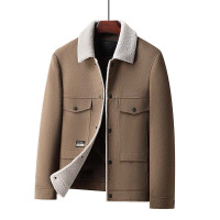 羊羔毛领鹅绒内胆双面呢羊毛茄克青年男士潮流秋冬新款羊毛厚外套_405