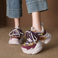 真皮老爹鞋2026春季新款网面拼接圆头系带百搭舒适休闲运动鞋女